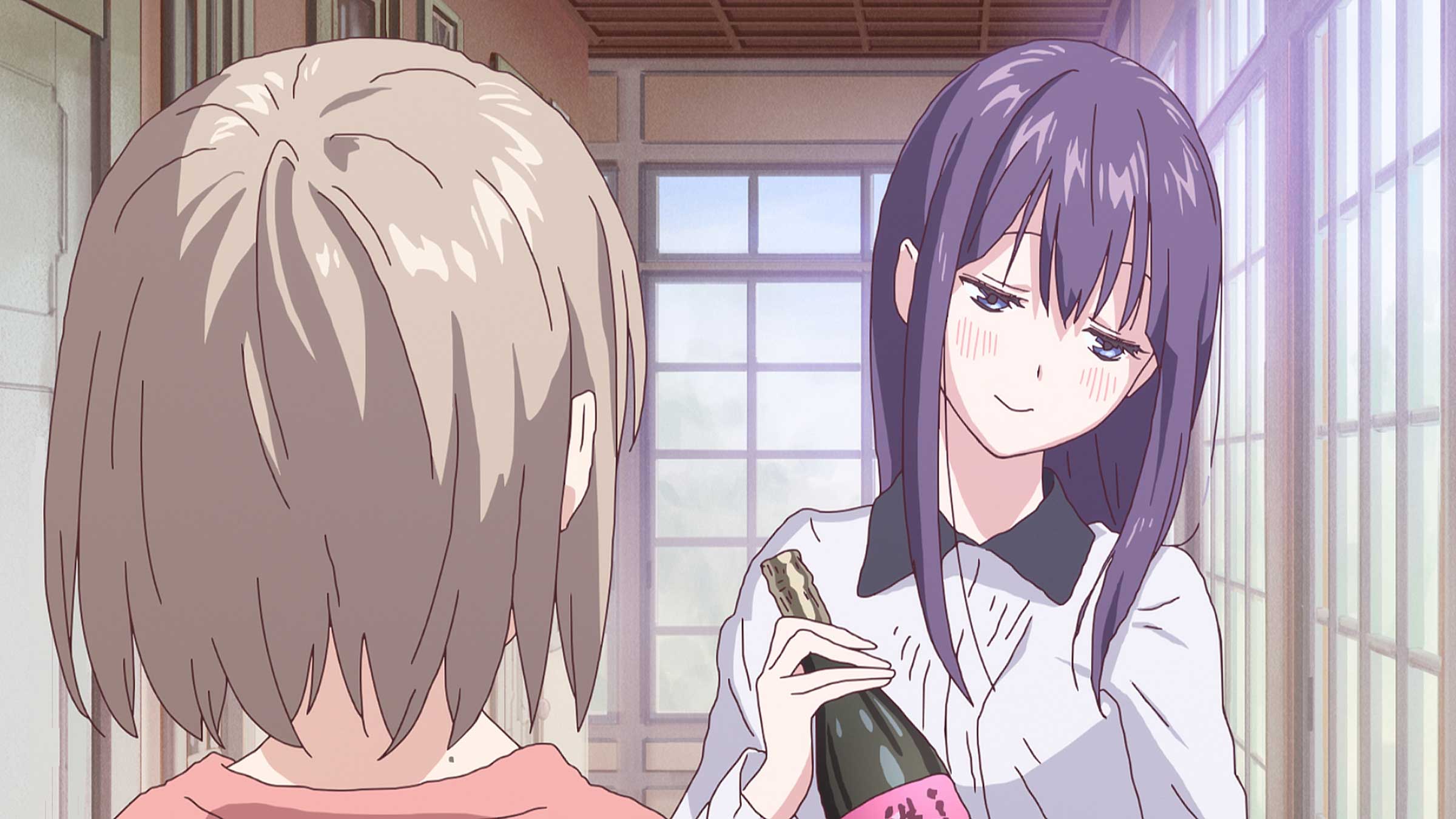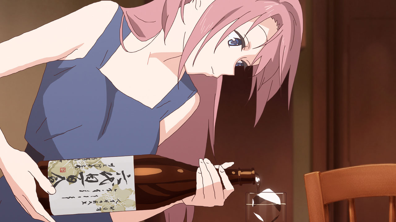 村上 一人作画回はどこかのエピソードでやろうと思っていましたが、松尾さんにやっていただくことになるとは思いませんでした。最初から『ヤマノススメ』コンビでやろうと思っていたわけではなく、偶然の巡り合わせなんですよね。山本さんに合いそうなエピソード……と考えたときに、松尾さんのスケジュールとピッタリハマって。本当に21分、本編のすべてがいいんです。松尾さんが色味や背景までコントロールしてくださっているので、芝居が鮮やかなんですよね。ある意味、演出の領分まで担当されているのですが、それは山本さんとの仲があったからこそ成り立ったものだと思います。あと、なんといってもお酒の作画。プロップデザインの松尾さん自ら描かれているので、グラスや液体の表現が優れているんですよ。背景が上がってきてから、作画を調整するなんてこともされていました。